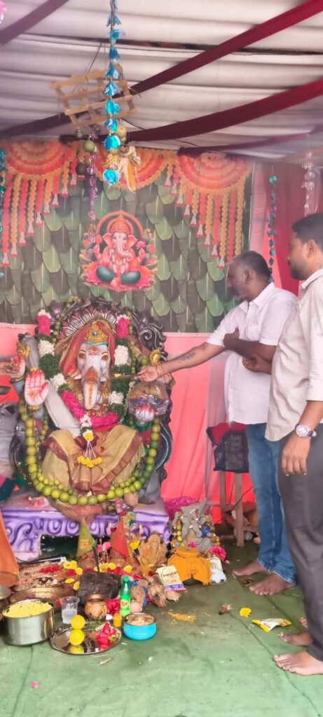 ఖమ్మం:(( సెప్టెంబర్ 4 మన జ్యోతి బ్యూరో వెంపటి నాయుడు )) - అన్నం పరబ్రహ్మస్వరూపమని, ఎదుటివారి కడుపు నింపేందుకు అన్నదానం చేయడం దేవుడు తనకిచ్చిన అదృష్టమని బీఆర్ఎస్ ఖమ్మం నగర యూత్ ప్రెసిడెంట్ దేవభక్తుని కిషోర్ బాబు అన్నారు. ఖమ్మంలోని 8వ డివిజన్ గోపాలపురం రామాలయం నందు గల వినాయకుని మండపం వద్ద మహా అన్నదాన కార్యక్రమాన్ని దేవభక్తుని కిషోర్ బాబు ఆధ్వర్యంలో గురువారం నిర్వహించారు. అనంతరం ఎల్బీనగర్ కొత్త కాలనీ, వైయస్సార్ కాలనీలోని డబల్ బెడ్ రూమ్ ల నందు గల వినాయక మండపం వద్ద నిర్వహించిన పూజా కార్యక్రమాలు, అన్నదాన కార్యక్రమానికి కిషోర్ బాబు ముఖ్యఅతిథిగా హాజరయ్యారు. ఈ సందర్భంగా కిషోర్ బాబు మాట్లాడుతూ గణేష్ నవరాత్రులను భక్తులు అత్యంత భక్తిశ్రద్ధలతో నిర్వహించుకున్నారని, అన్నదాన కార్యక్రమాలను ఇంత పెద్ద ఎత్తున నిర్వహించడం సంతోషకరమన్నారు. ఈ నవరాత్రుల్లో ఆధ్యాత్మిక శోభ వెల్లివిరిసిందని తెలిపారు. కులమతాలకు అతీతంగా భక్తులు నవరాత్రులను విజయవంతం చేశారని, వారికి అభినందనలు తెలిపారు. ఇదే ఉత్సాహంతో, భక్తిశ్రద్ధలతో నిమజ్జన కార్యక్రమాన్ని నిర్వహించాలని ఆకాంక్షించారు. అందుకోసం తన వంతు సహాయ సహకారాలు అందిస్తానని తెలిపారు. కార్యక్రమంలో బీఆర్ఎస్ పార్టీ ఎస్టీ సెల్ అధ్యక్షుడు వాంకుడో సురేష్ నాయక్, బి ఆర్ ఎస్ పార్టీ బీసీ సెల్ నాయకులు కందాల వీరేంద్ర గౌడ్, 8వ డివిజన్ నాయకులు జాలఅభిజిత్, వడ్రానపు శీను,చింతల భాస్కర్, అజ్మీర్ గాంధీ, రామ కృష్ణ, బొడ్డుపల్లి వెంకటేశ్వర్లు, పమ్మి రమేష్, రాము, సతీష్, పాషా, విజయ్ తదితరులు పాల్గొన్నారు.